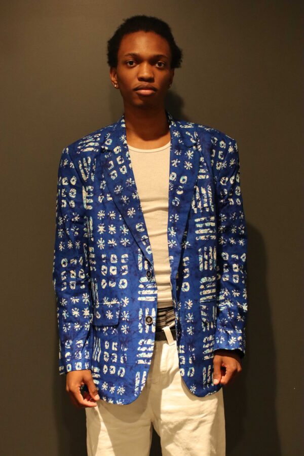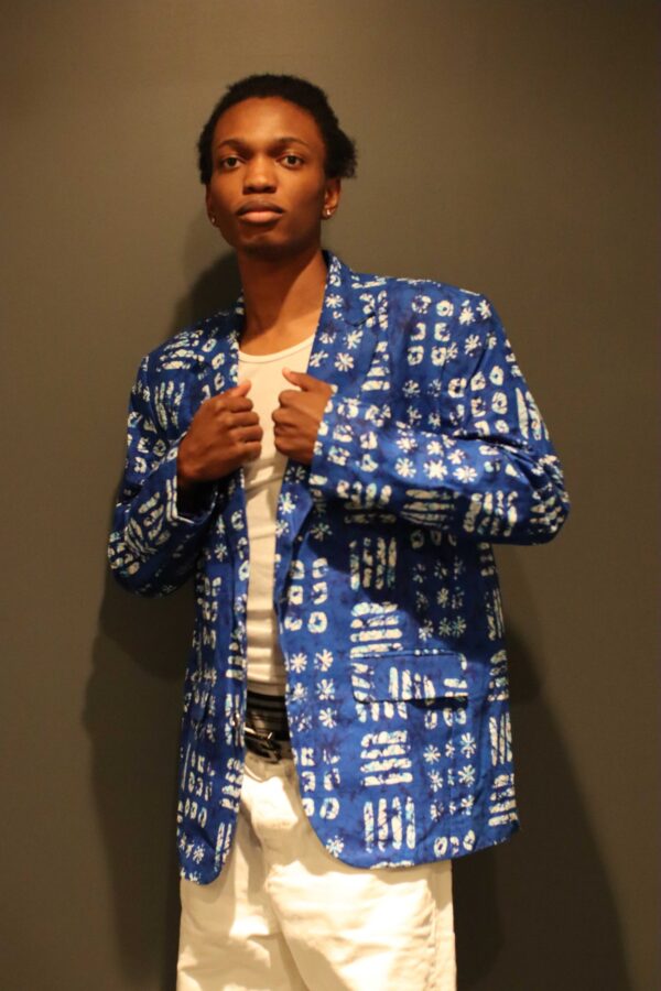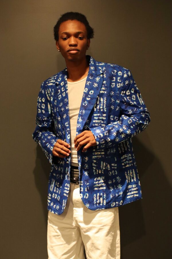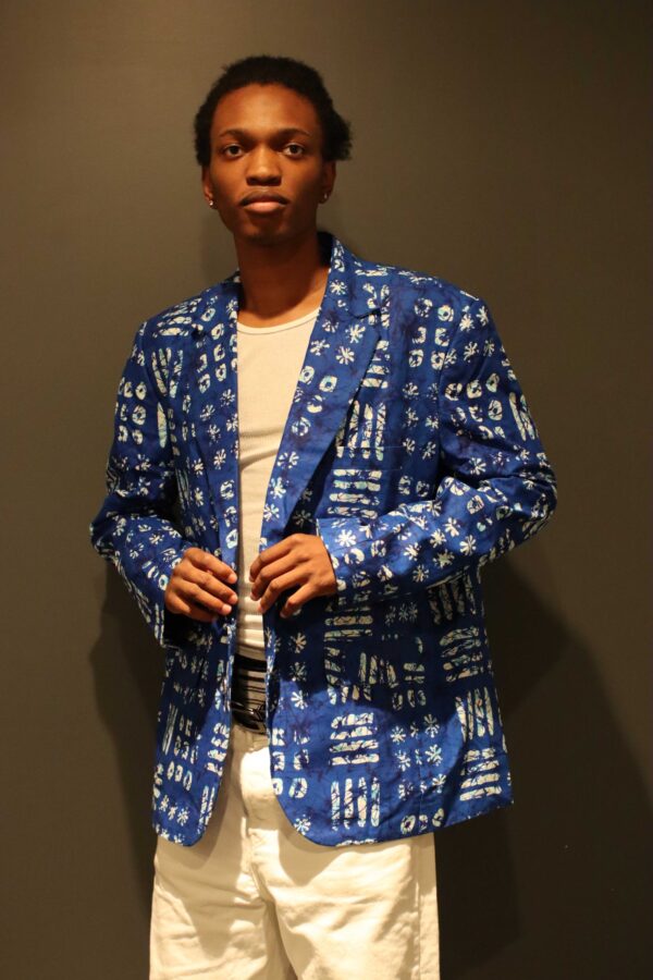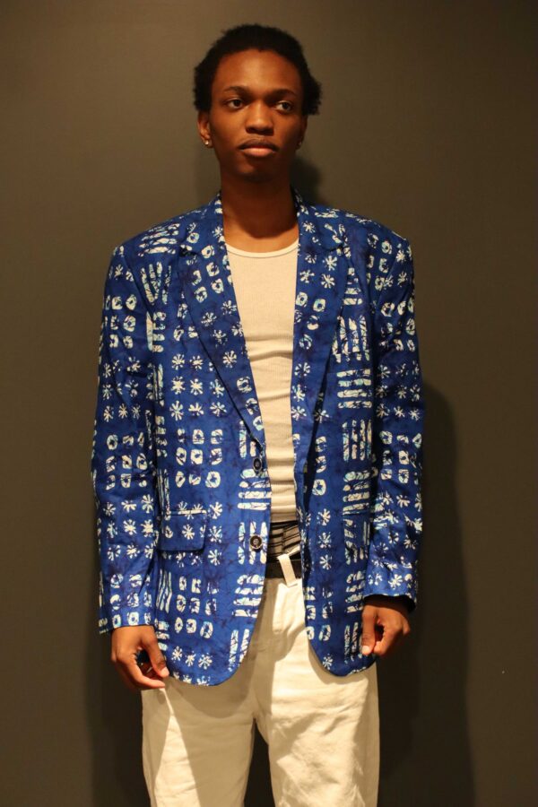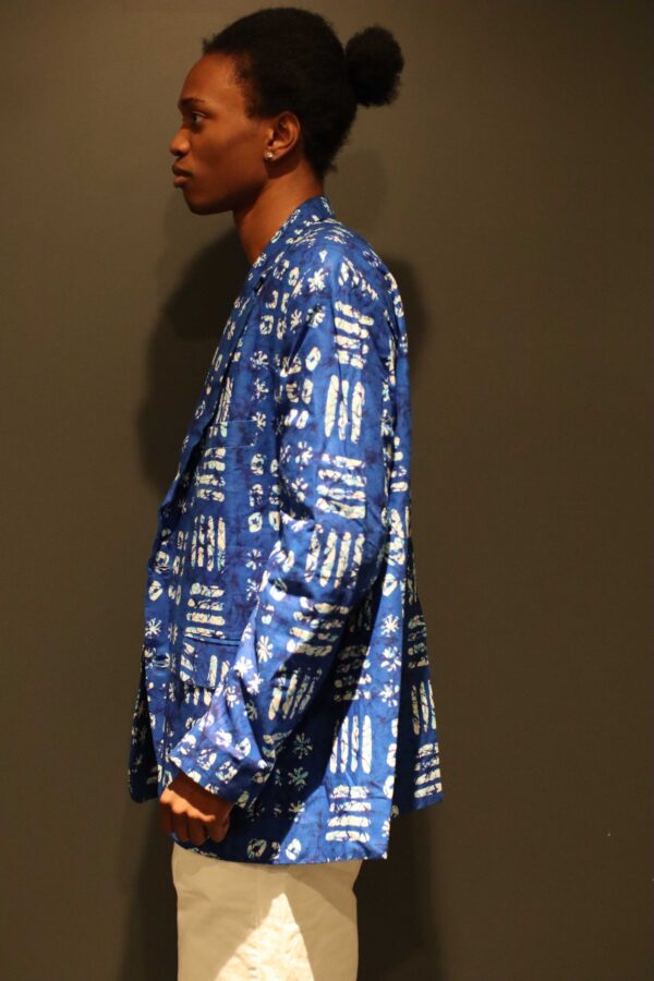 Affirmez votre style avec ce blazer unique qui allie l’authenticité des motifs traditionnels à la sophistication urbaine. En bleu cobalt éclatant, ce blazer est orné de motifs inspirés de l’art africain, sublimant chaque détail avec une touche artistique.