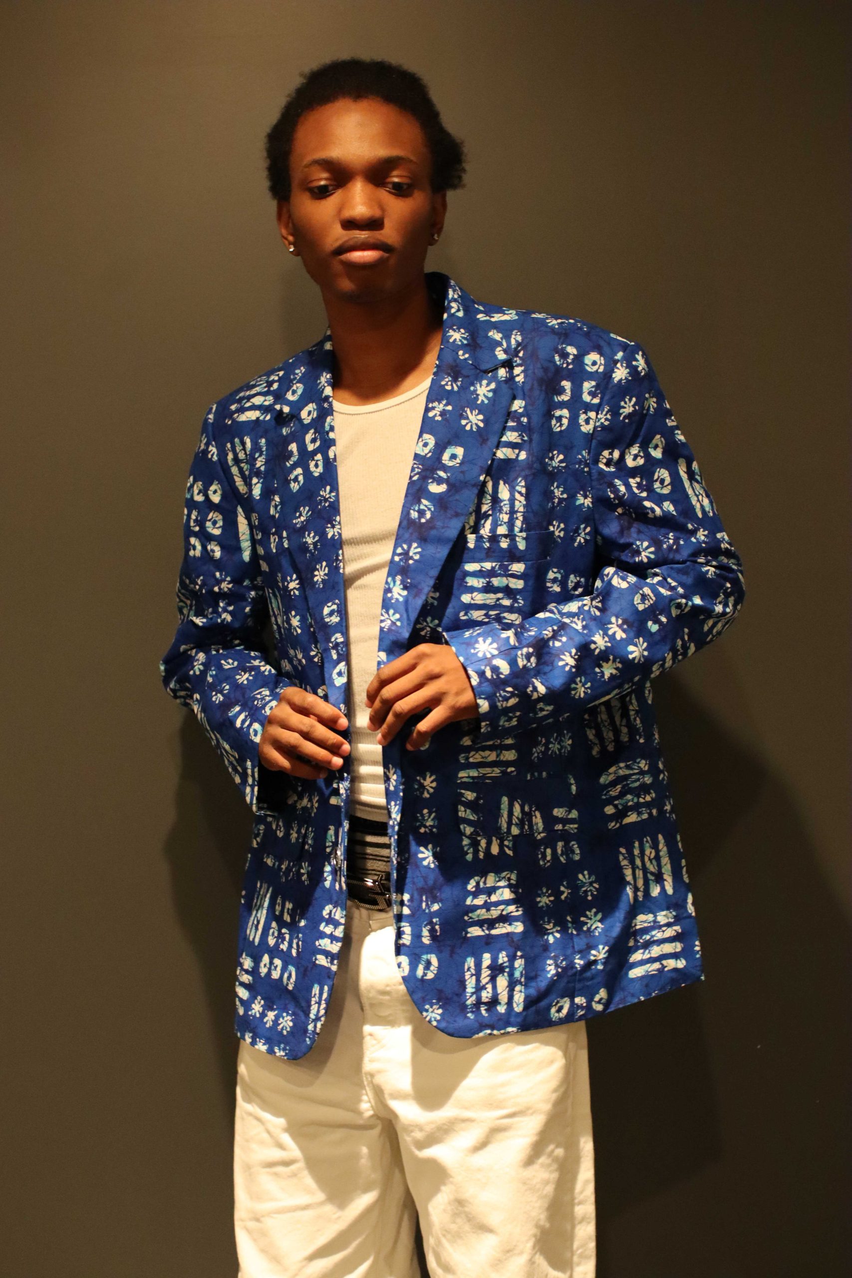 Sublimez votre allure avec ce blazer bleu royal, une pièce rare qui marie tradition et modernité. Ses motifs blancs, délicatement tracés, évoquent l’héritage artistique africain, transformant chaque détail en une œuvre d’art unique. Fabriqué avec soin, ce blazer offre une coupe impeccable, garantissant confort et prestance en toutes circonstances.