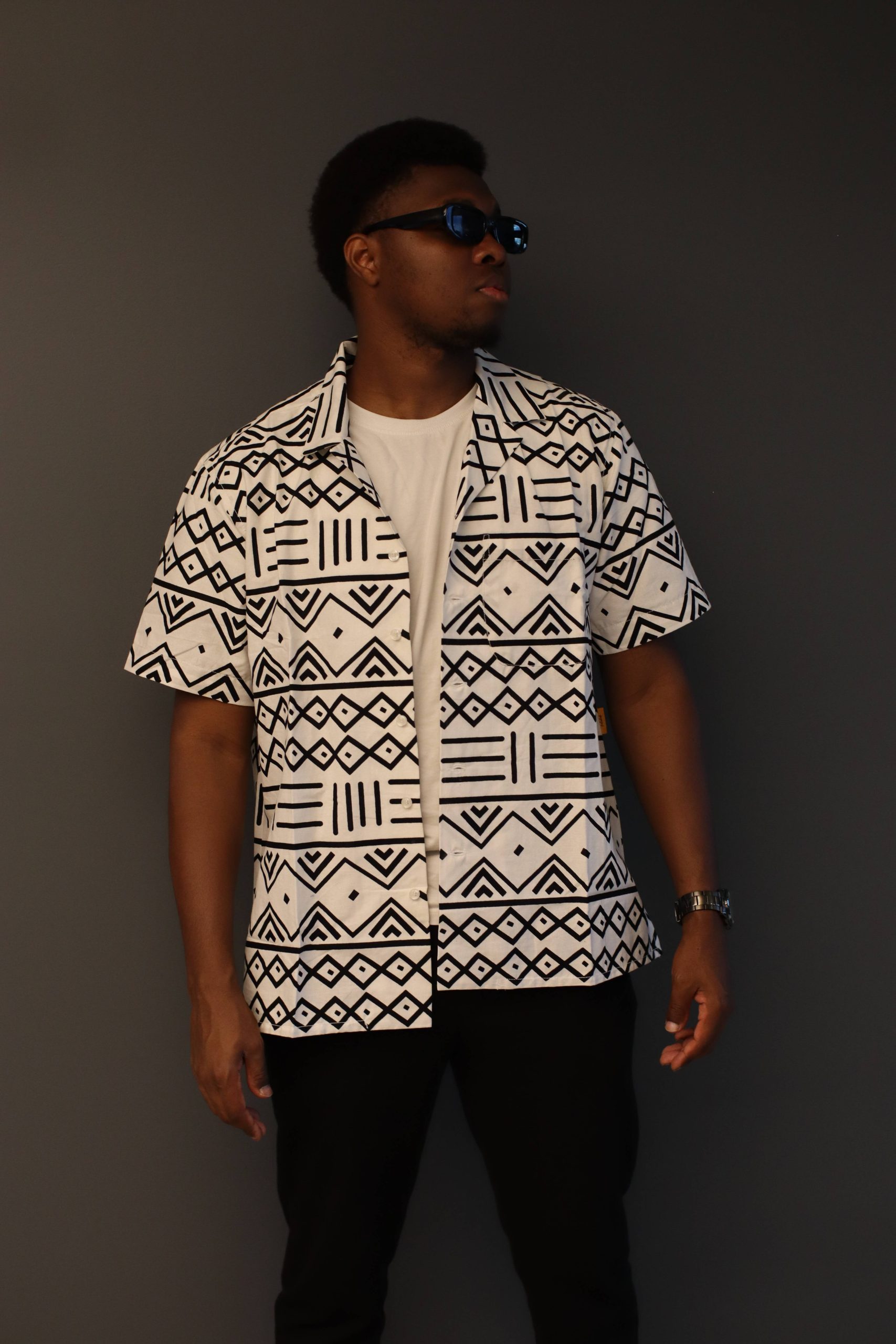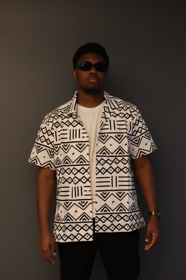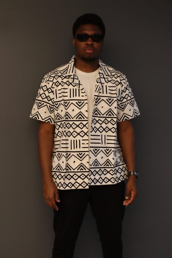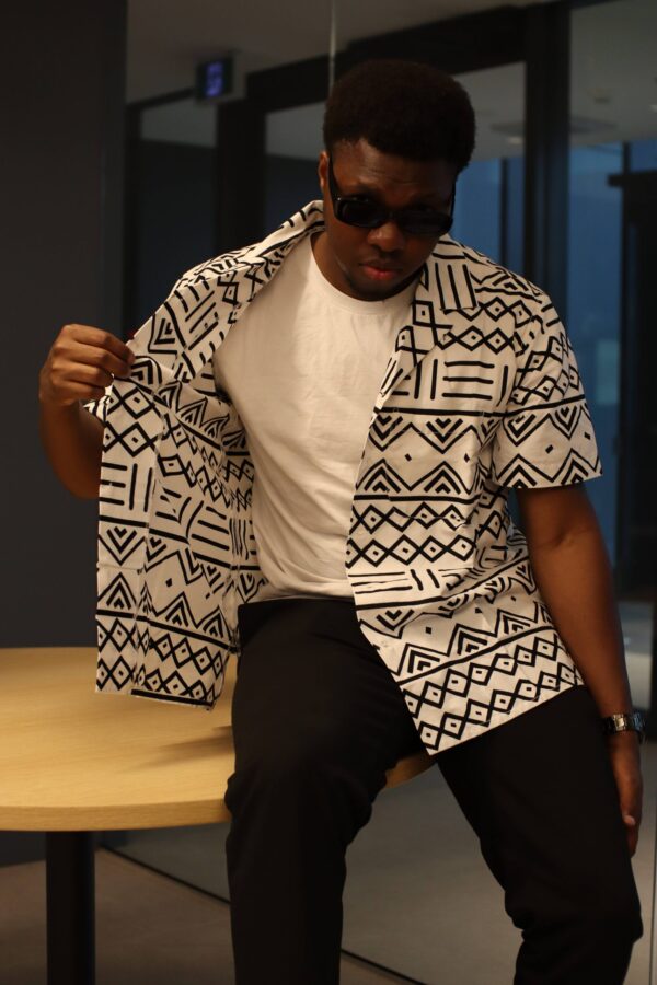 Cette chemise à motifs ethniques noir et blanc incarne l’élégance moderne avec une touche de tradition. Confectionnée dans un tissu léger et confortable, elle est idéale pour toutes les occasions, que ce soit pour un look décontracté ou plus formel. Le motif géométrique inspiré de l’art tribal confère à cette chemise une esthétique unique et sophistiquée, parfaite pour ceux qui veulent se démarquer avec style.