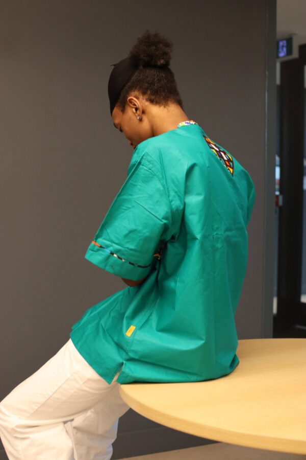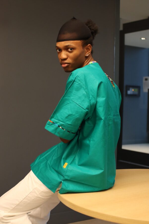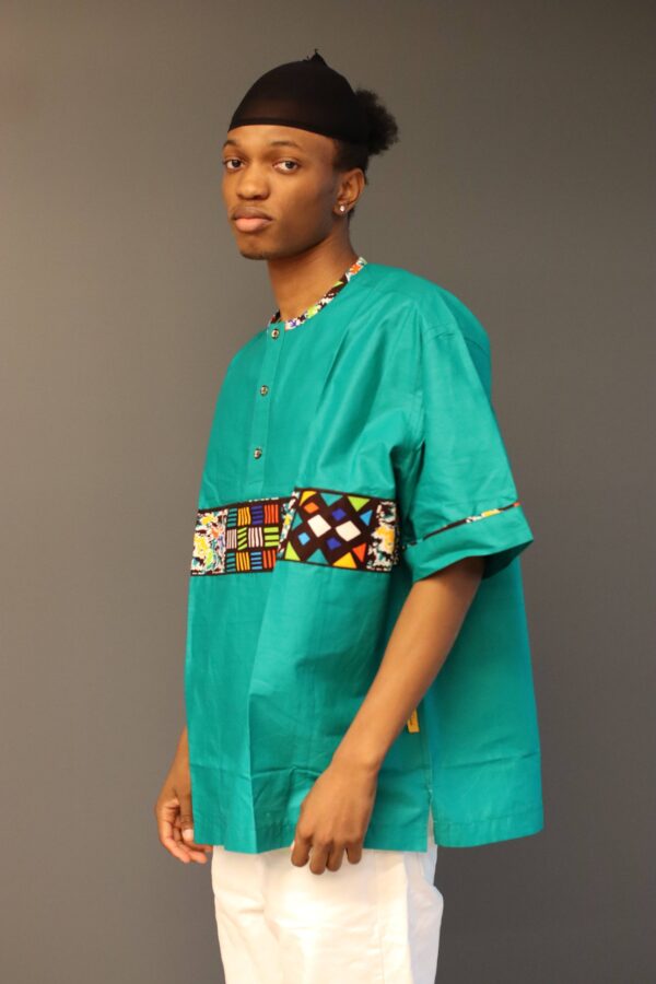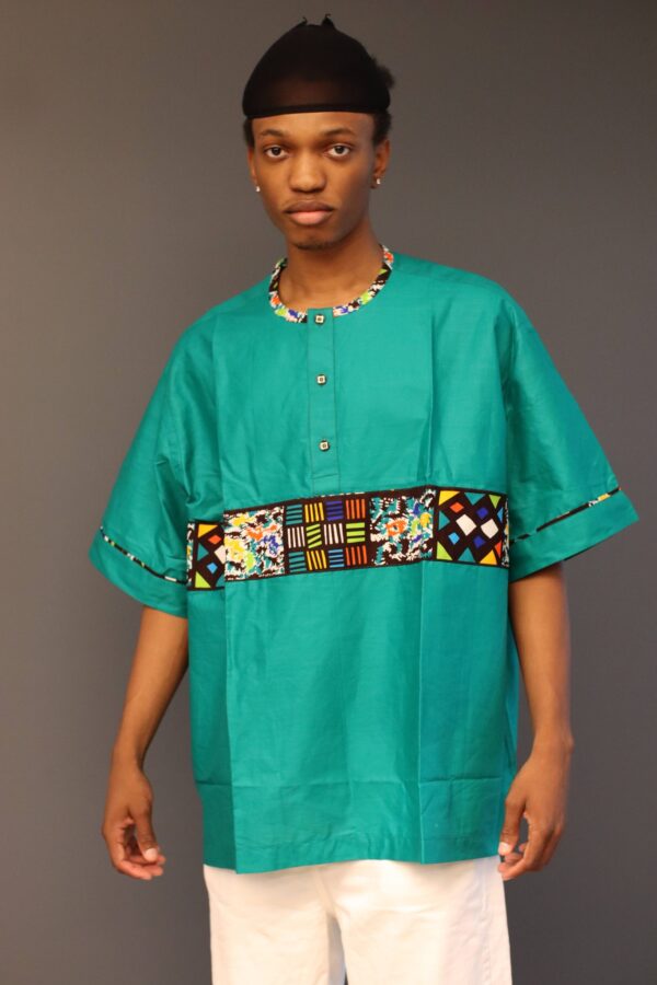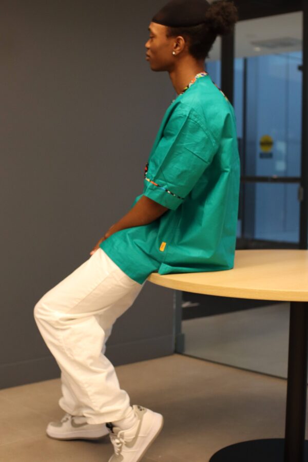Embrassez l’essence de l’élégance africaine avec ce haut traditionnel vert émeraude, rehaussé par des détails ethniques vibrants. Conçu pour l’homme audacieux et sophistiqué, ce vêtement allie confort et originalité. Les motifs géométriques colorés autour du col et sur la poitrine apportent une touche culturelle distincte, tandis que la coupe ample assure un port agréable et fluide, idéal pour les journées décontractées ou les événements spéciaux.
